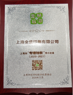 2020年2月,全盛以深邃的行业洞察力和前瞻性的战略思维,引领企业精准定位市场,聚焦主业,深耕细作,成功荣获上海市“专精特新"中小企业。