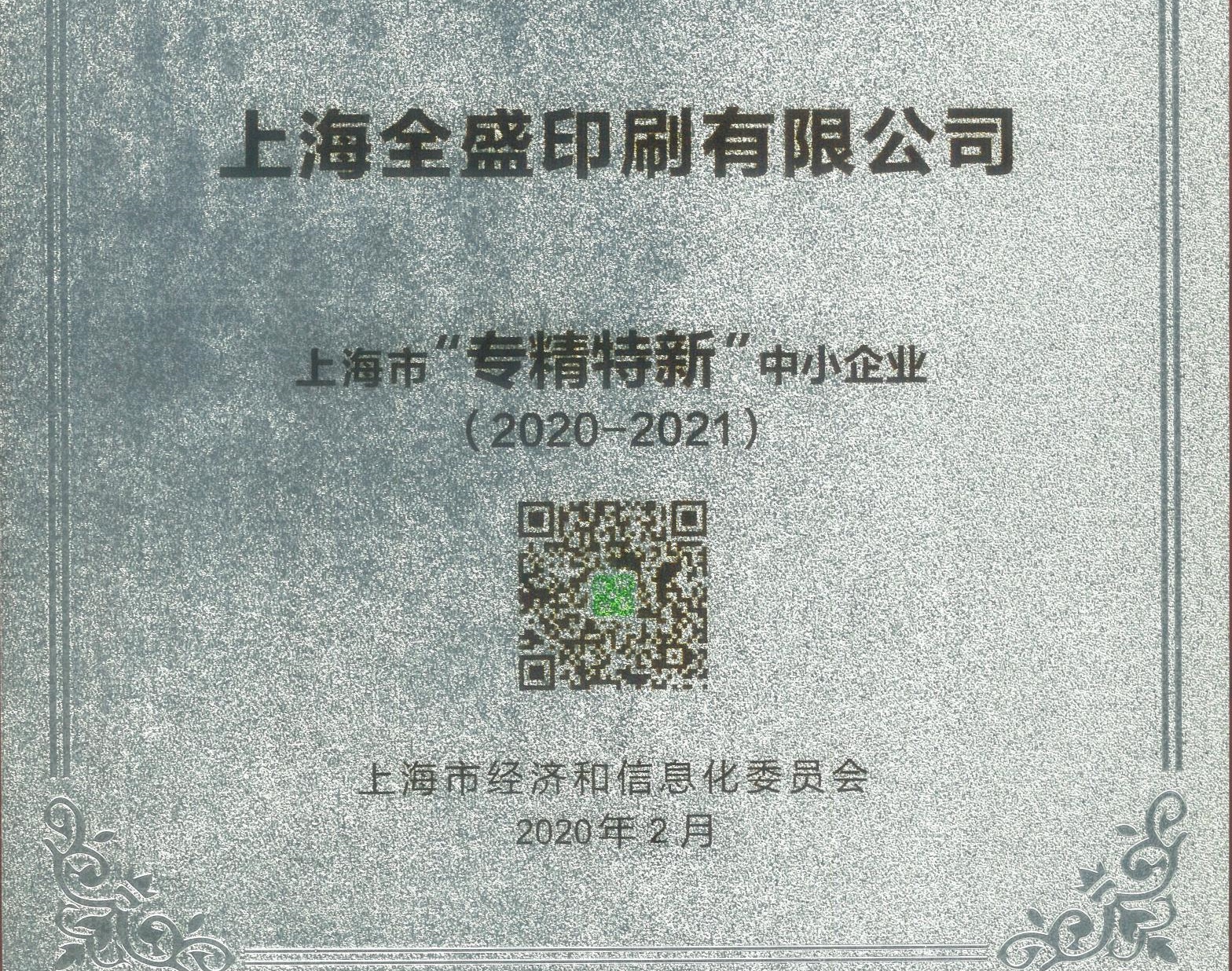 2020年2月,全盛以深邃的行业洞察力和前瞻性的战略思维,引领企业精准定位市场,聚焦主业,深耕细作,成功荣获上海市“专精特新"中小企业。